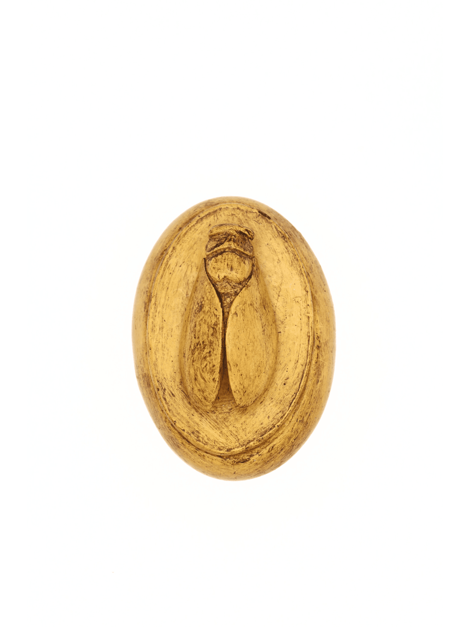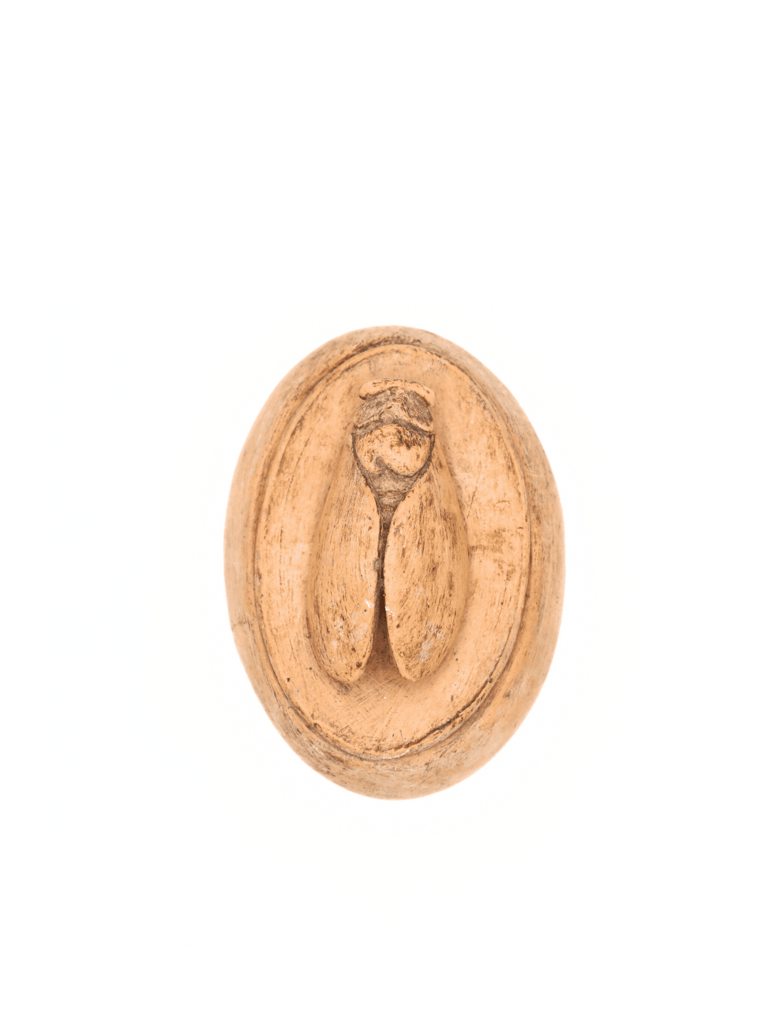 Cette boîte ovale en plâtre peint et ciré est conçue pour contenir de la lavande séchée. Pratique pour parfumer naturellement votre maison. Elle se distingue par sa forme arrondie et son motif de cigale en relief..
