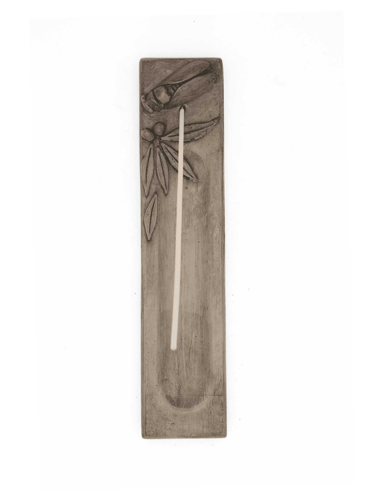 Apportez une touche artisanale à vos moments de détente avec ce porte-encens en plâtre peint à la main. Son design est en forme de plumier, long et épuré.