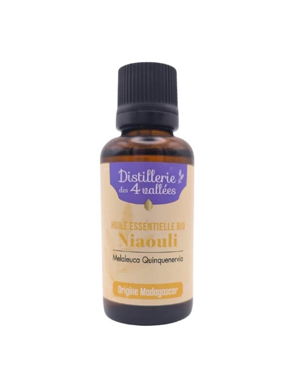 Côté science, le niaouli est naturellement riche en 1,8-cinéole, une molécule aromatique associée à son parfum clair et balsamique (présente aussi chez certains eucalyptus).